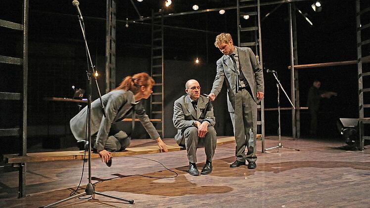 Landestheater "Der Prozess". Schauspiel nach dem Roman von Franz Kafka in der Dramatisierung von Ruth Bader und Johannes Schmid. Inszenierung Matthias Straub, Bühnenbild und Kostüme Till Kuhnert, Dramaturgie Dirk Olaf Hanke. Darsteller: Thorsten Köhler, Thomas Straus, Sandrina Nitschke, Oliver Baesler.