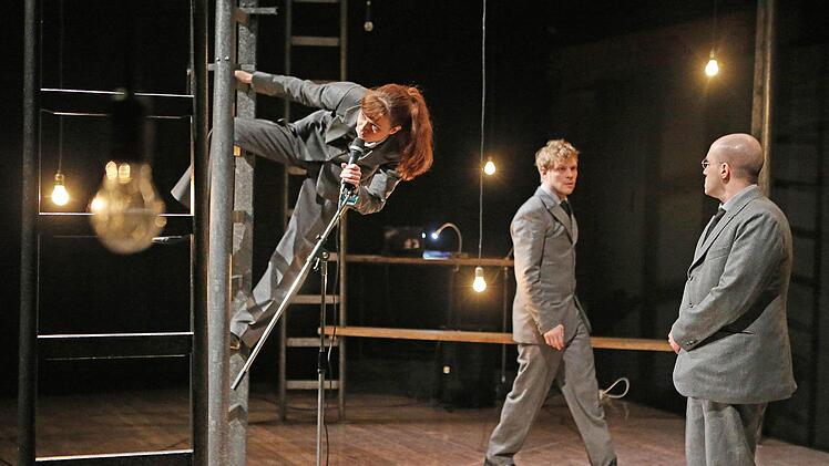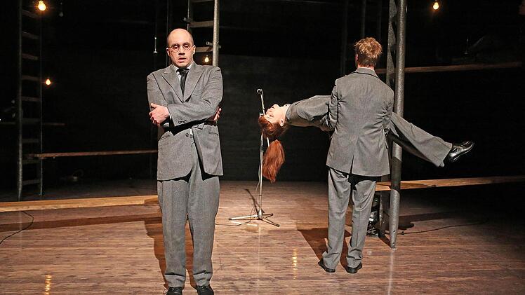 Schauspielchef Matthias Straub hat die bizarre Szenenfolge, die durchaus in die Befindlichkeit des modernen, zunehmender Überwachung ausgesetzten Menschen, zu übersetzen ist, bedrängend intensiv verbildlicht im Coburger Theater in der Reithalle - unter dumpf drohenden Klängen und blitzartig in prägnante Bewegungsmuster fallend, die den Psychohorror körperlich expressiv ausstellen.