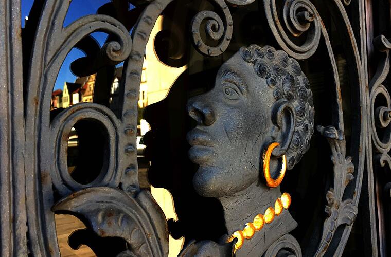Unübersehbar zudem eine schmiedeeiserne Mohrenkopf-Variante an der Eingangstür des Rathauses.