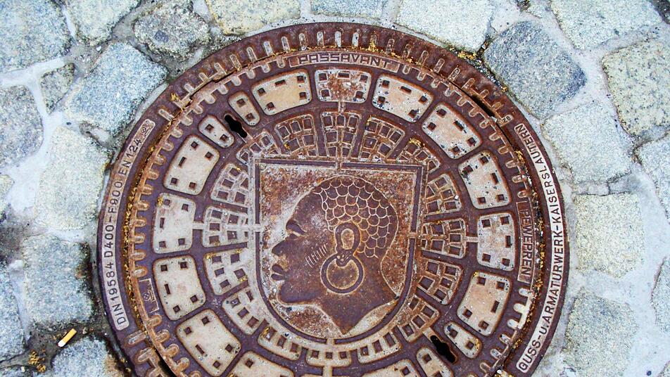Zwischen Kanaldeckel und Rathaustür: Wo sich das Konterfei des Heiligen Mauritius in der Vestestadt entdecken lässt.