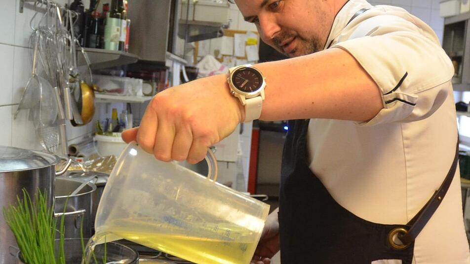Daniel Polzer kocht in seinem Lokal "Alte Henne" nahe Schloss Hohenstein vor allem mit lokalen und regionalen Produkten. Daher auch saisonal. Schließlich ist er Partner der Genussregion Coburger Land. Im Dezember und Januar macht er sich für seine Gäste schon mal die Arbeit, die Wurzeln zu schrubben, unter fließendem Wasser zu schälen und sofort in Zitronenwasser einzulegen, damit sie nicht braun anlaufen. Dass er den Fond, den er dann damit ansetzt, recht lange köcheln lässt, gibt den Aromen Zeit, sich zu entwickeln. "Ich zeige das auch gern in meinen Kochkursen, wie das den Geschmack verändert", sagt er.