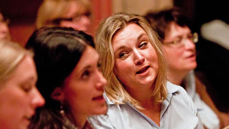 "Ich will Euer Gesicht sehen" Das aber kann nur gelingen, wenn Chor und Dirigentin ständig dialogisieren, wenn die Sänger den Blick von den Noten lösen. "Ich will Euer Gesicht sehen", sagt Antoinetta Bafas und fordert eindringlich: "Sucht den Kontakt mit dem Publikum." Viel hängt ab von der sorgfältigen Behandlung des Textes, der zwischen Latein, Althochdeutsch und Altfranzösisch hin und her springt.