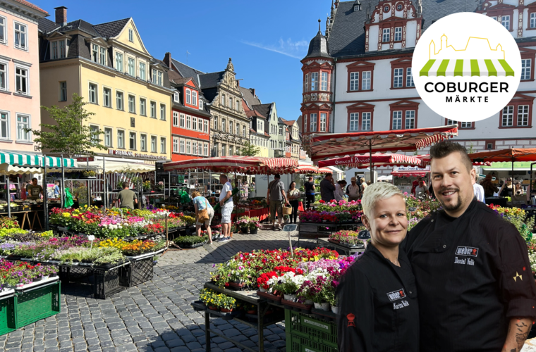 Der Coburger Wochenmarkt thematisiert in dieser Woche das Grillen. Unterstützt werden die Händler am Samstag, 22. Juli 2023, von der BBQ-Crew.