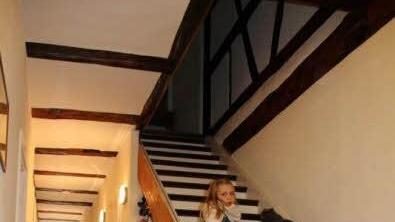Da er fand, dass die beiden Gebäude "schon immer zusammengehörten", verband Hofmann sie mit einer Brücke aus Altholz. Über der Toreinfahrt wacht ein kleiner Drache. Für das Nachbarhaus reichte es vorerst nur zu kosmetischen Arbeiten: Nachdem es innen gesäubert wurde, erneuerte der 52-Jährige Dach und Fassade. "Viele kaufen sich ein Haus und wollen es verändern. Wir aber wollten den Charakter des Hauses bewahren", hebt der Schreiner hervor.