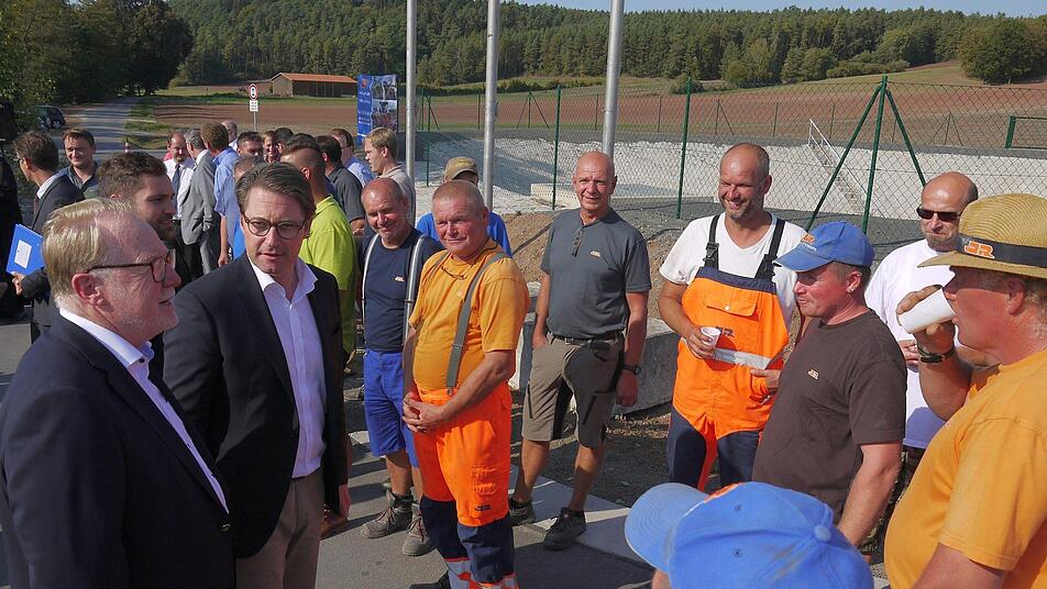 Zur offiziellen Verkehrsfreigabe für den Ausbau der Bundesstraße 303 in und östlich von Oberelldorf musste der Bundesverkehrsminister terminbedingt mit dem Hubschrauber anreisen und in Hafenpreppach landen - die Bedeutung des Straßenverkehrs hatte er aber auf dem Luftweg nicht vergessen. "Auch kleinere Projekte sind wichtig für den ländlichen Raum", sagte Andreas Scheuer (CSU) gestern im Seßlacher Stadtteil. Und mit 7,8 Millionen Euro Baukosten, da waren sich alle Festredner einig, war der Ausbau ein kleines Projekt. Aber ein für die Anwohner eben auch enorm wichtiges.