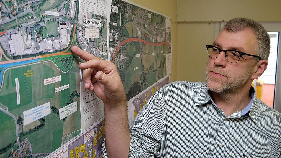 Nachdem die Sanierung der arg maroden Brücke über die B4 bei Niederfüllbach inzwischen abgeschlossen ist, stehen nun großflächige Asphaltierungsarbeiten an. "Rund 18.000 Quadratmeter Fahrbahn", schätzte Schnappaufs Kollege Günter Engelhardt, "bekommen eine neue Decke." Damit dieser Großauftrag für die Firma Rädlinger, den Partner des Staatlichen Bauamtes bei diesem Projekt, schnell vonstatten gehen kann, wurde die Idee einer umfangreichen Sperrung der Bundesstraße geboren. Wer nun aus Fahrtrichtung Bamberg kommt, kann weder in Niederfüllbach auf die B303 noch in Creidlitz von der B4 herunter fahren.