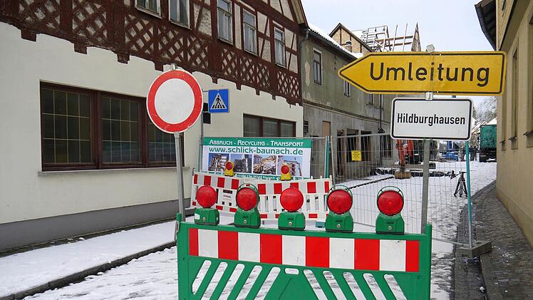 Der Zeitdruck für den Abriss hält sich aber in Grenzen. "Der Antrag für die Sperrung der Hildburghäuser Straße gilt noch bis zum 20. Februar", erklärt Bürgermeister Tobias Ehrlicher (SPD). Bis dahin müssten der Abriss und die Absicherung des denkmalgeschützten "Löwen" mit seiner Fachwerkfassade locker zu schaffen sein.