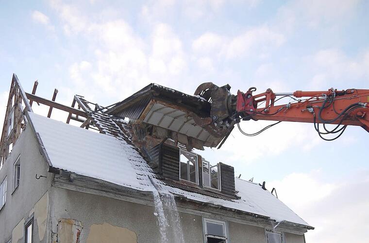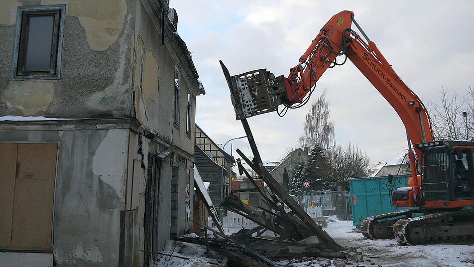 Dem Gasthaus "Goldener Löwe" in Bad Rodach geht es an den Kragen. Aus Sicherheitsgründen findet der Abriss der hinteren Gebäudeteile nur noch mit dem Bagger statt.
