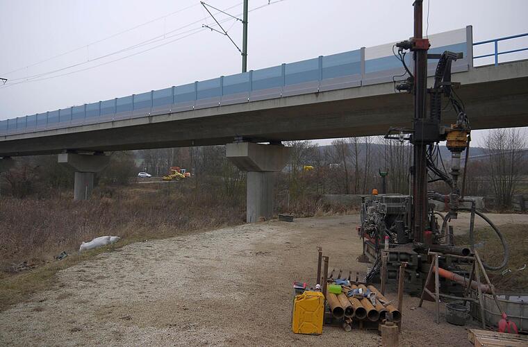 Bei Kontrollen im Rahmen der inzwischen abgeschlossenen Testfahrten hat die Bahn festgestellt, dass sich einer der Pfeiler tiefer als vorgesehen in den Boden abgesenkt hat. Deshalb rücken im Januar noch einmal die Baumaschinen an. Was dann gemacht wird, erklärte Drescher laienverständlich: "Der Pfeiler wird mit einer Betonplombe angehoben und stabilisiert."