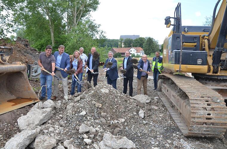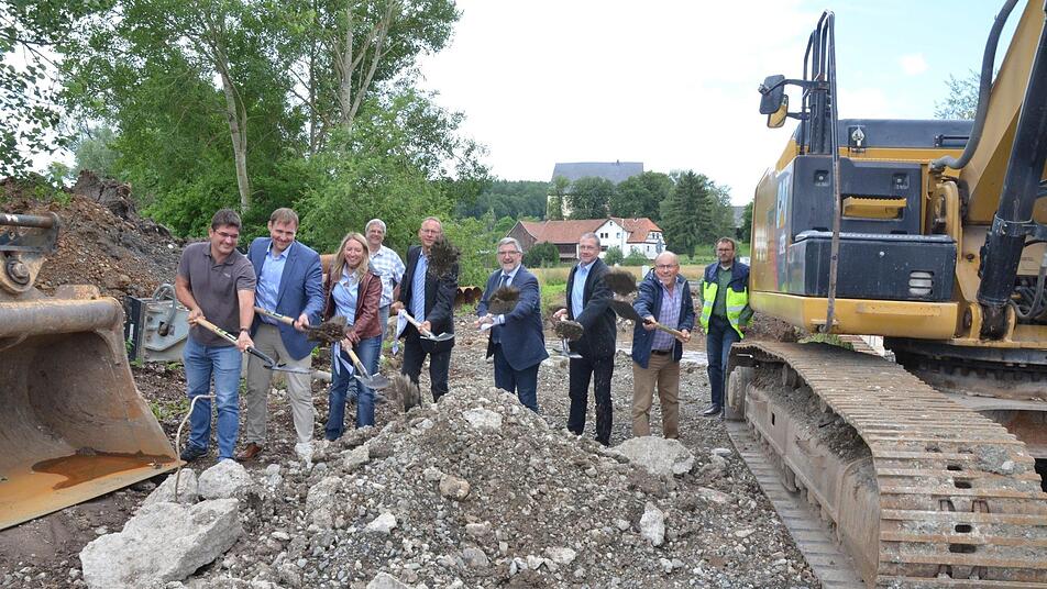 Schon seit dem 3. Juli ist die Kreisstraße CO 9 bei Schloss Wiesen voll gesperrt. Das ist gut so, denn die Rodach-Brücke, über die die Straße hinaus zur Staatsstraße 2204 führt, ist nicht mehr da. In den kommenden Monaten wird eine neue Brücke gebaut, für die am Donnerstag der erste Spatenstich ausgeführt wurde.