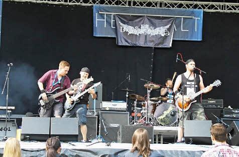 Die größten Fans stehen direkt am Bühnenrand, andere sitzen auf der Wiese. Aber alle feiern sie den Opener des No-Name-Festivals im Rosengarten, die Coburger Band Drown in Grace.