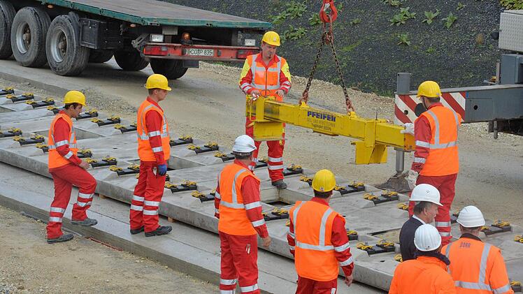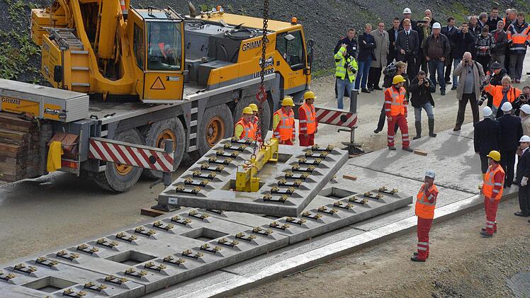 Bei Oberwohlsbach begann am Dienstag der Gleisbau für die neue Schnellzugstrecke von Oberfranken nach Thüringen.