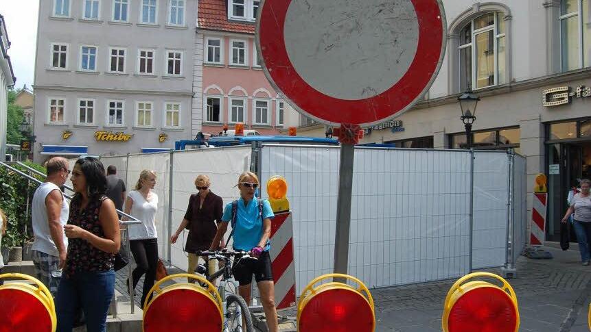 Von Montag, 28. Juli, wird für voraussichtlich zwei Wochen die Zufahrt zur Spitalgasse von der Mohrenstraße aus auf Höhe des Gräfsblocks wegen der Sanierung der Fernwärmeleitung gesperrt. Die Zufahrt für Pkw erfolgt über die Georgengasse und Spitaltor. Lkw über 3,30 Meter müssen die Fußgängerzone über die Obere Anlage/Steingasse anfahren.
