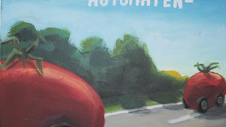 Bei den "Automaten" von Oliver Heß handelt es sich übrigens um auf der Straße rasende Tomaten. In Acryl auf Leinwand und ganz klein.