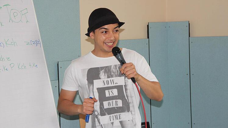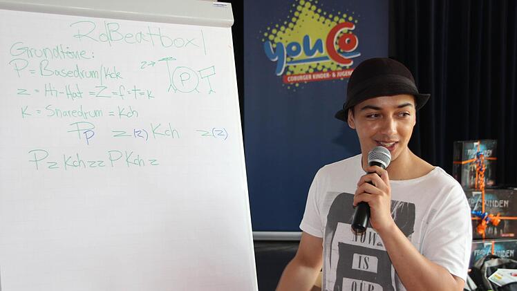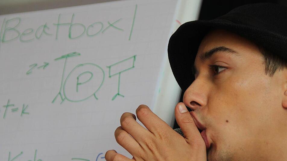 Und Robert alias "RoBeat", seit 2006 Beatboxer und Entertainer - bekannt aus dem "Supertalent"- macht vor, was Jugendaugen und -ohren staunen und wackeln lässt. Doch es dauert gar nicht lang, da haben auch die Coburger Youngsters den Beat drauf - zumindest haben sie sehr schnell gelernt "Pizzakuchen" aus ihrem Mund ins Mikrophon zu pressen, dass so manches Schlagzeug ruhig in der Ecke stehen bleiben kann.