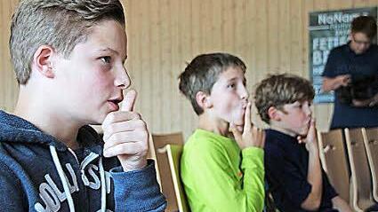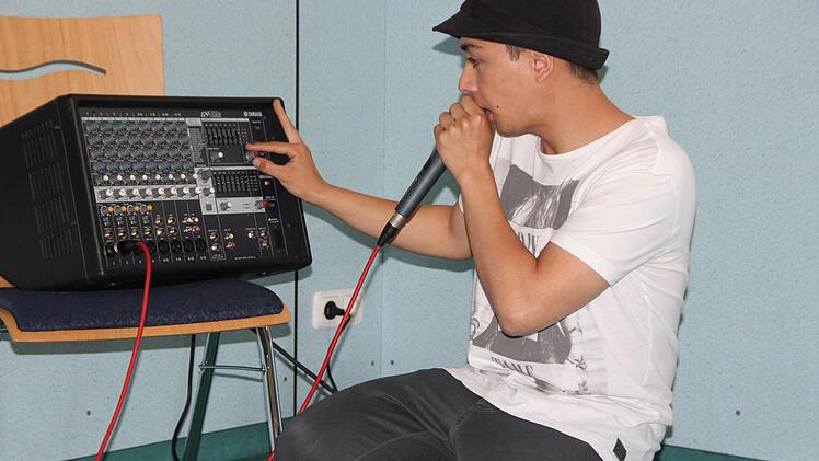 Daumen an die Lippen, Luft einziehen und kräftig "tikketikkepuuuh" herauspressen. Das Mikro fest am Mundwinkel. Alle anderen machen die Augen zu und hören nur hin. So entstehen Musikgeschichten ganz ohne Instrument. Beim Beatbox-Workshop mit RoBeat im Stadtjugendheim ließen sich Fabian, Finn und Adrian auf das Abenteuer ein.