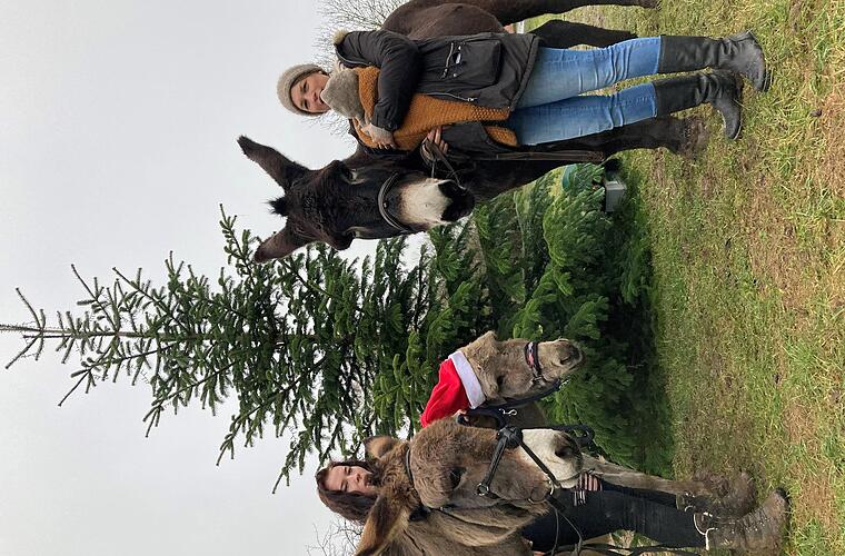 Wer Lust hat, an einem festen Tag in der Woche mit einem Esel spazieren zu gehen, allein oder mit Eltern oder Großeltern, kann sich gerne melden. Allerdings kostet das im Monat 40 Euro. Möglich ist das mit Beau und Luna. Luna ist 21 Jahre alt, ein sehr zuverlässiger Kinderesel. "Sie ist eine liebe Dame", sagt Ana, die genau aufpasst, dass niemand herunterfällt.
