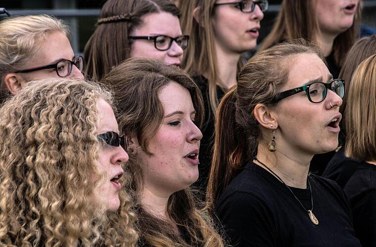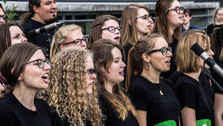 Erinnerungen an die umjubelten Auftritte mit der Hochschul-Bigband im Kongresshaus weckt dann auch der Hochschul-Chor "Die Klangfänger" mit seiner Fähigkeit, die eigene Freude am Gesang scheinbar selbstverständlich und mühelos in Gesang zu verwandeln.