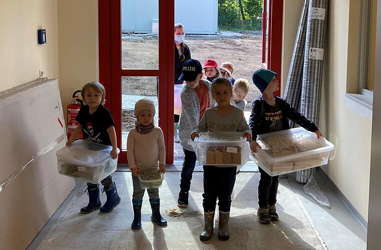 Das neue Montessori-Kinderhaus auf Schloss Hohenfels ist fertig. Die Kinder helfen beim Umzug kräftig mit.