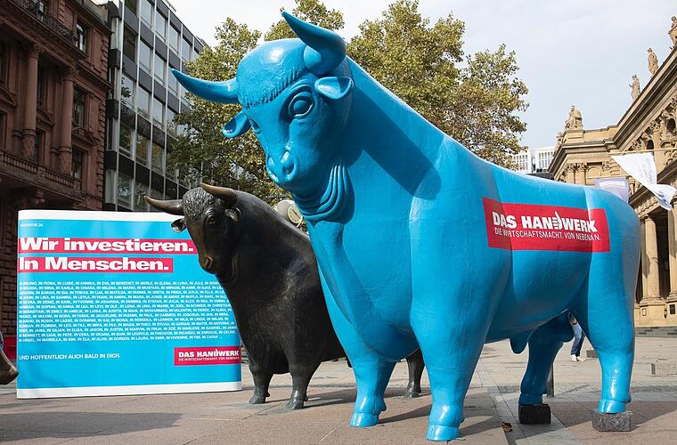 "Wir investieren. In Menschen." Mit diesem Motto hat das Handwerk zum bundesweiten Tag des Handwerks im September für Furore gesorgt. Denn, begleitend zu dem Slogan, hat die Wirtschaftsbranche vor der Frankfurter Börse einen Handwerksbullen platziert. Ein kraftstrotzender, blauer Koloss, der Bulle und Bär des Aktienhandels deutlich in den Schatten stellte.