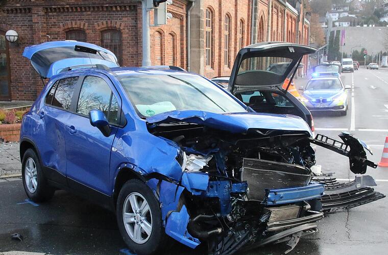 Der Mast der Ampel stoppte den Skoda nach dem Zusammenprall mit dem Chevi. Dabei entstand an den beiden Fahrzeugen Totalschaden. Der Rettungsdienst brachte zwei Leichtverletzten ins Klinikum nach Coburg. Der CEB hatte die Aufgabe, die Unfallstelle zu reinigen.