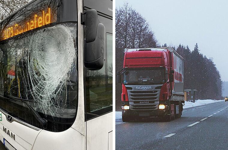 Eisplatten krachen gegen Windschutzscheibe von Linienbus