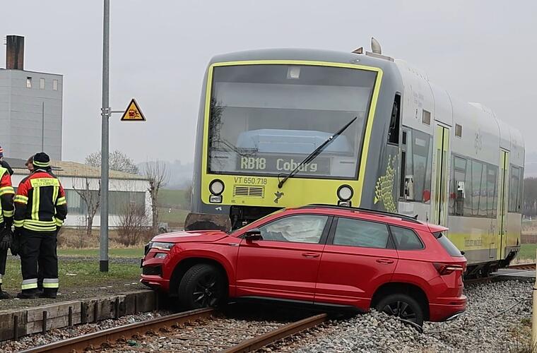 Am Dienstagmorgen sind im Kreis Coburg ein Regionalzug und ein Auto zusammengestoßen. Mehrere Rettungseinheiten rückten an.