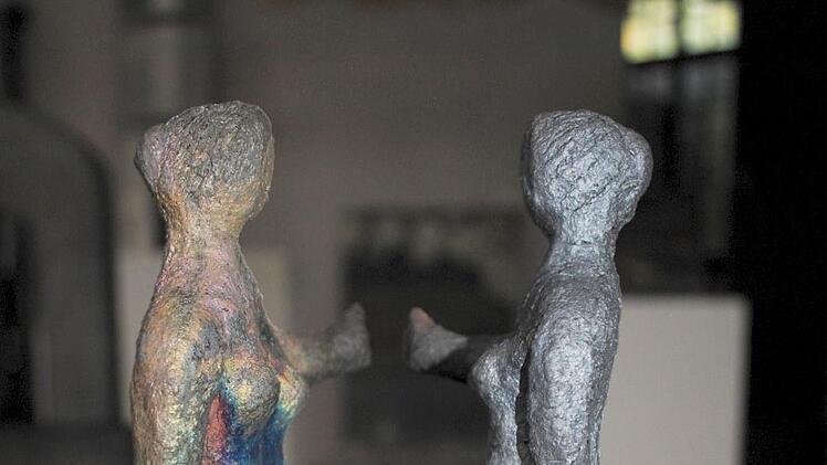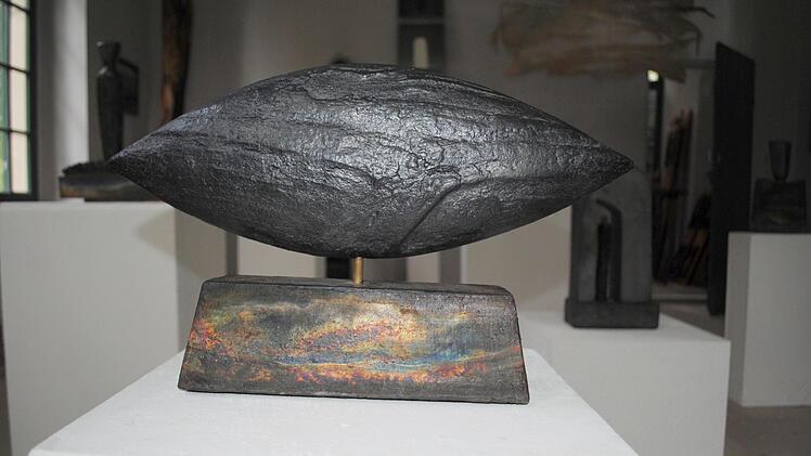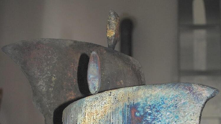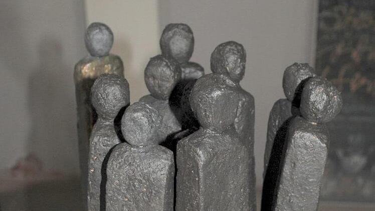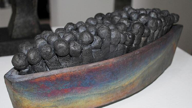 In der aparten Stimmung des kleinen historischen Gebäudes begegnen sich und uns die in ihrer Form geklärten Raku-Keramiken von Ursula Kunze-Hümmer. Ob figürlich oder gänzlich abstrahiert, scheint ein dunkles Leuchten aus dem leicht schillernden Brand zu kommen. Ein übervolles Flüchtlingsboot, eine gedrängte Menschengruppe, zwei in ihrer Gedrängtheit schwere, in ihrer Gestik aber leicht wirkende Engel, geglättete, zum Nachstreichen verführende Formen oder Abdruck von Organischem: Ursula Kunze-Hümmer folgte bei diesen neueren Arbeiten der bedrängenden Frage nach den Grenzen des Menschen. Die steht am Ende stets vor dem Tod.