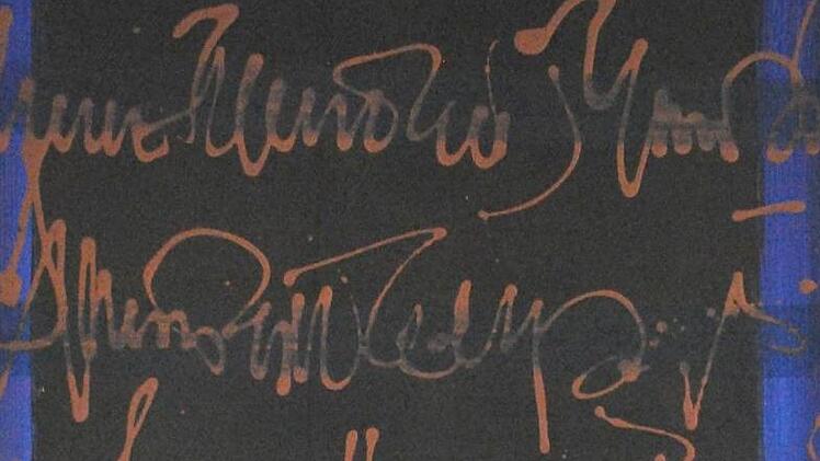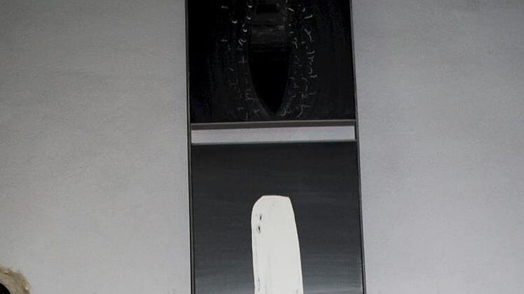 Das gemeinsame Thema "Über Grenzen" brachte die Malerin Vera Schnitzer in diesem besonderen Ausstellungsraum und unter dem Einfluss von Kunze-Hümmers im Format sogar handlichen, dabei aber geradezu wuchtig wirkenden Keramiken zu "merkwürdigem Verhalten", wie sie selbst irritiert feststellte. Sicher, da sind die vertrauten Schriftbilder. Doch Kunze-Hümmers Keramiken musste eine andere Geste und Leichtigkeit entgegen gesetzt werden.