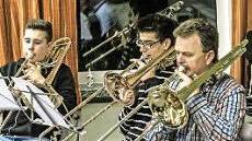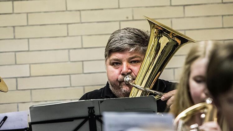Thomas Krämer: Ich bin Gründungsmitglied, bin seit 1980 dabei und spiele Bariton, aber mit Tenorhorn hat's angefangen. Im Grunde hat das mit einem Zufall begonnen. Ich wollte eigentlich keine Musik machen, wollte nur schauen, was meine Freunde so machen. Dann hat mir Horst Krämer, der damalige Leiter des Posaunenchors, das Instrument in die Hand gedrückt, hat gesagt: Du hast breite Lippen, du spielst Tenorhorn. So war meine Laufbahn bestimmt. Angefangen haben wir mit 14, 15 Leuten. Heute sind wir gut 40, wenn wir komplett sind. Bevor Markus Hollstein kam, standen wir fast vor der Auflösung. Doch seit er da ist, ist es bei uns steil nach oben gegangen. Jetzt versuchen wir unser Niveau zu halten, das wir erreicht haben. Das ist eine anspruchsvolle Aufgabe.