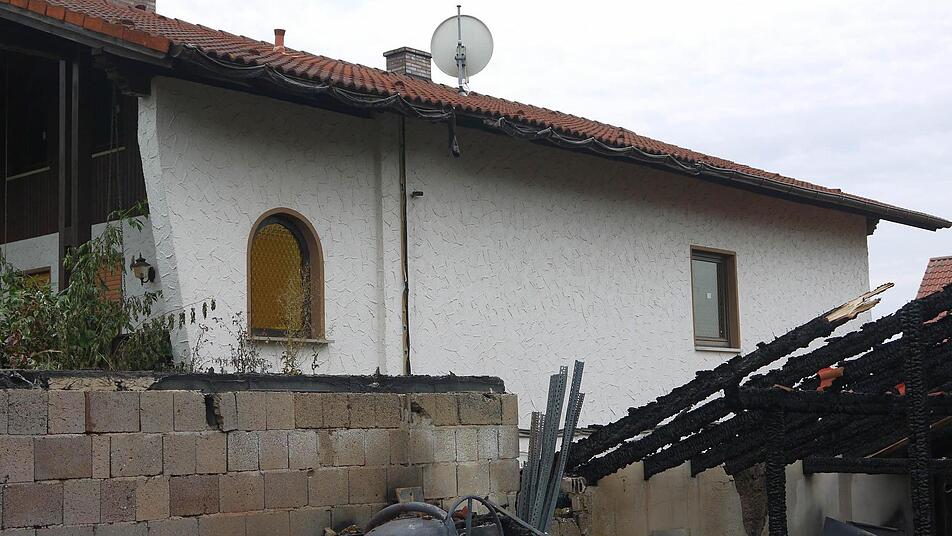 Am Tag danach wird das Ausmaß des Schadens durch den Brand erst richtig deutlich. Das Dach des Wohnhauses ist schwer in Mitleidenschaft gezogen, der Anbau samt Carport sind komplett niedergebrannt.
