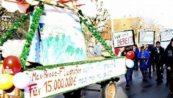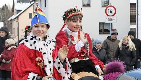 Im offenen Cabrio fuhr das Kinderprinzenpaar ihre Lieblichkeit Lara die I (Lara Lindner) und ihr Tollität Prinz Paul der I (Paul Rebhahn) und grüßte die Gäste. Bei den Motivwägen haben die Schüler aktuelle Themen aufgegriffen. Darunter etwa den "Max Brose Flughafen". "Für 15 Millionen mach mer den Muppberg platt" versicherten sie.