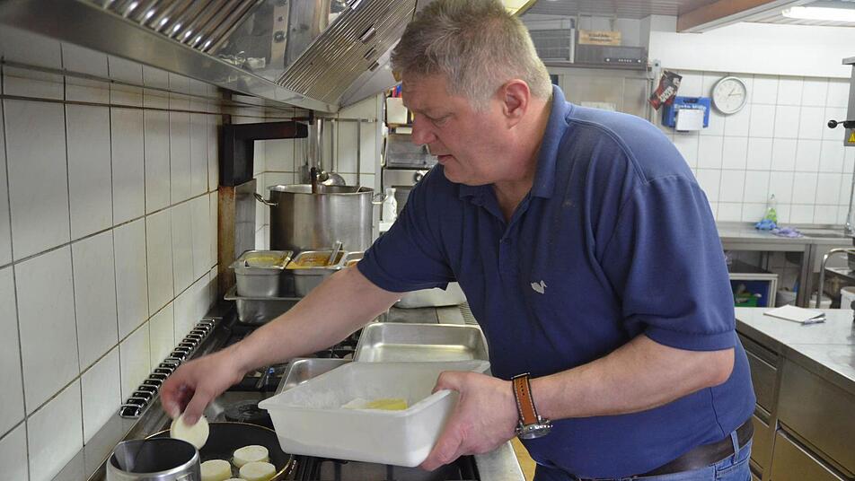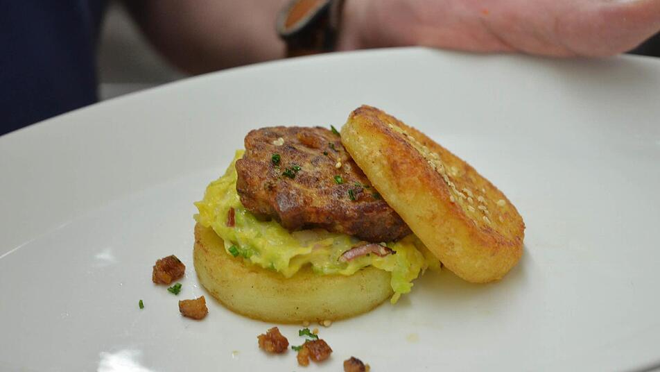 "Wir sind die Klößmacher", sagt Johannes Muff. Wenn der Wirt vom "Lindenhof" im Neustadter Stadtteil Ketschenbach an Burger denkt, dann denkt er auch an Klöße, denn an Klöße denkt er schließlich immer. Ergebnis: der Kloßburger, was sonst. Im Lindenhof können sie auch klassische Burger, aber der Kloßburger ist ihre Spezialität. Schöne Scheiben aus Kloßteig werden in Mehl gewendet und gebraten. Sie sind das, was dem üblichen Burger das Brötchen ist. Zwischen zwei von ihnen kommt Wirsinggemüse, Entenfleisch und Würfelchen aus cross gebratener Entenhaut. Oben auf den Kloßburger streut Johannes Muff noch etwas Sesam. "Die Reduktion aus der Bratensoße kommt mit ins Fleisch, so wird das richtig schön saftig", schwärmt der Chef.