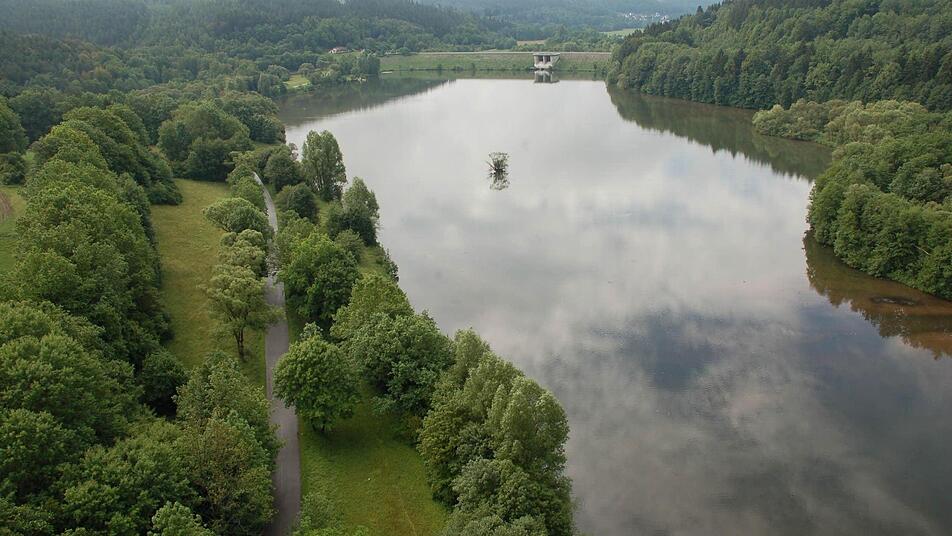 Es ist die Staatsstraße 2206, die vom Rödentaler Zentrum in Richtung Thüringen führt. Bis kurz nach Fischbach verläuft sie noch da, wo sie immer verlief. Dann steigt sie den Damm des Froschgrundsees hinauf und - anders als man vermuten würde - drüben wieder hinunter in den Grund. Hier ist die Straße für Fahrzeuge gesperrt. Nur Wasserwirtschaft und Landwirte dürfen dort fahren, Anlieger eben.