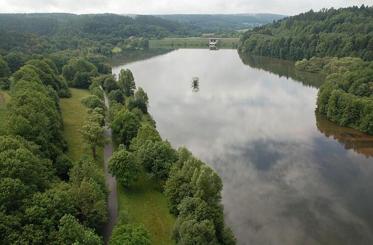 Wie die spätere Lösung aussehen kann, steht noch nicht fest. Schon zu der Zeit, als der See gebaut wurde, gab es Überlegungen für eine Trasse am Talhang auf Weißenbrunner Seite, die dann über Stelzen nach Thüringen weitergeführt wird.