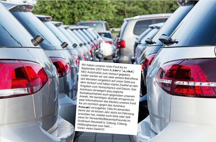 "Leider warten wir seit Monaten vergeblich auf unser Geld aus dem Verkauf", schrieb die Coburgerin deshalb Anfang Juni auf Facebook und startete die besagte Suchaktion. Denn weil das Autohaus keine Angaben zum Weiterverkauf machen wollte, sollte der Kontakt zum neuen Eigentümer Klarheit in die Sache bringen. Der Aufruf lautete somit: Wer kennt jemanden, der im letzten Jahr einen gebrauchten, roten Ford Ka gekauft hat? Die Coburgerin veröffentlichte dazu in den sozialen Netzwerken sogar noch Teile der Fahrgestellnummer. Und sie fügte hinzu, gehört zu haben, dass es weitere Betroffene im Raum