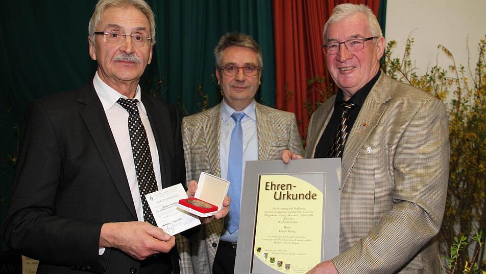 Vorsitzender Günter Freitag wird auch geehrt Eine besondere und für ihn unerwartete Ehrung erfuhr Vorsitzender Günter Freitag. Für seine außergewöhnlichen Verdienste um das Chorwesen im Sängerkreis wurde ihm die Melchior-Franck-Plakette verliehen.