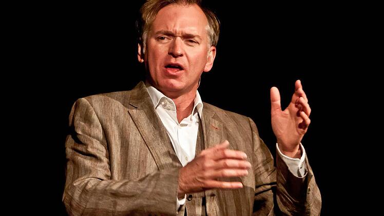 Christian Springer ist einfach nicht zu bremsen. Einen ganzen Abend lang umkreist er den Stuhl, der einsam auf der Bühne im "Schwarzen Bär" in Beiersdorf steht, aber nur ein einziges Mal setzt er sich tatsächlich kurz hin. Denn der Kabarettist Christian Springer kommt einfach nicht zur Ruhe. Allzu viele Themen umtreiben ihn, machen ihn wütend oder lassen ihn verzweifeln.