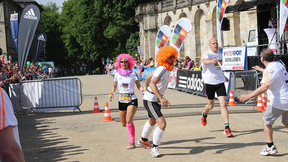Die meisten Staffeln hatten noch ihren dritten Läufer auf der Strecke, da war das Team vom TV 1848 schon durch. Locker trabten die vier Jungs nach 32:48 Minuten zu viert durchs Ziel - die drei Vorausläufer eskortierten ihren Schlussmann auf den letzten gut 100 Metern. So hielten es etliche der Staffeln, die gestern beim Cityrun angetreten waren. Denn für viele stand bei der vier mal 2,5-Kilometer-Staffel der Teamgedanke im Vordergrund - und das Laufen an sich. Die Strecke selbst war nicht einfach: Sie führte an allen Sehenswürdigkeiten der Innenstadt vorbei, doch viele Läufer dürften dafür kaum einen Blick gehabt haben. Mit dem Anstieg die Schwarze Allee hinauf zum Schlossplatz lag eins der anstrengendsten Teilstücke unmittelbar vor dem Ziel.