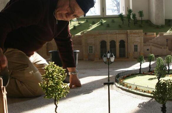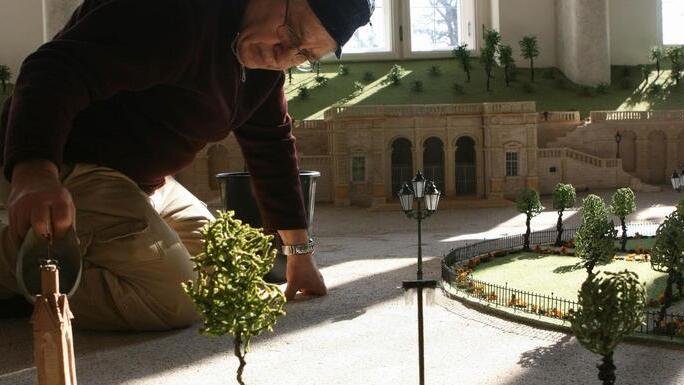 Kiril Stoganov, der seit gut fünf Jahren ohne Job ist, macht die Arbeit am Modell Freude. Früher hat er in Bulgarien auf dem Bau gearbeitet hat. Es sei so schön ruhig im Museum, sagt er, deswegen sei er gerne hier.