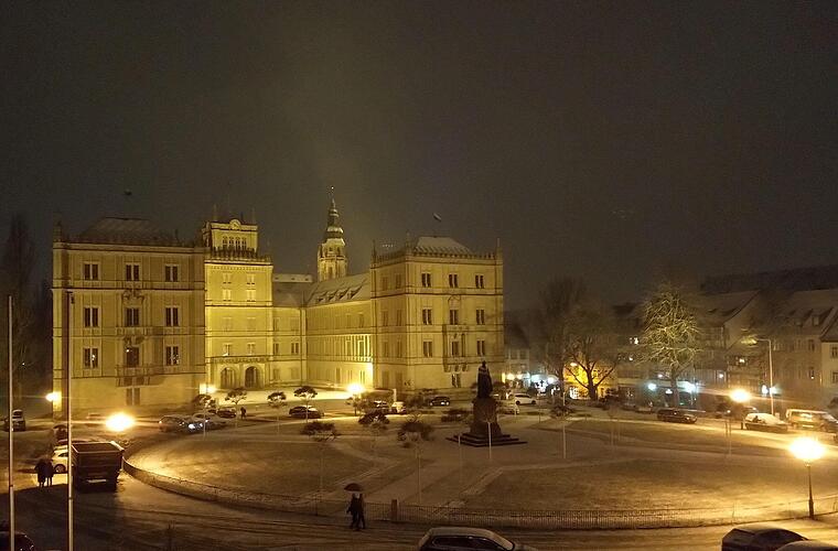 Zwischen Marktplatz, Schlossplatz und Theaterplatz blieb der feuchte Schnee zumindest vorübergehend liegen und hüllte auch das Denkmal von Prinz Josias in einen weißen Mantel ein.