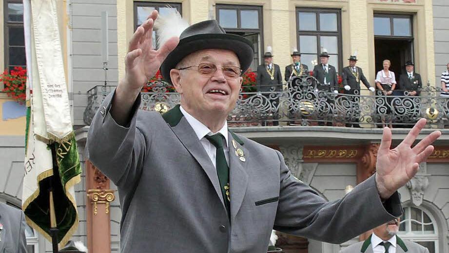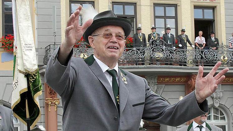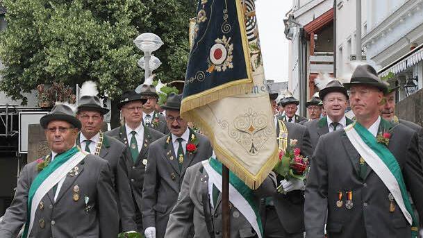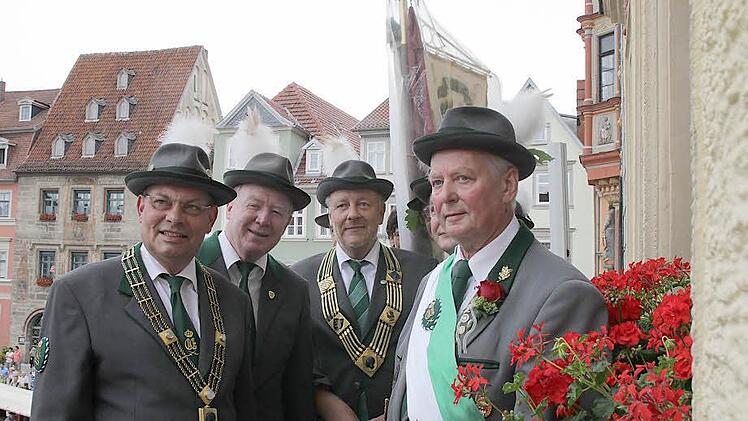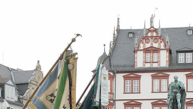 Die Schützen holen ihre Traditionsfahne am Rathaus ab und der Oberbürgermeister unterstreicht die Verbundenheit der Menschen zu Coburg.