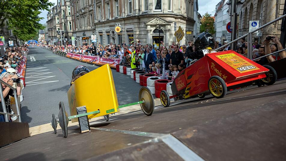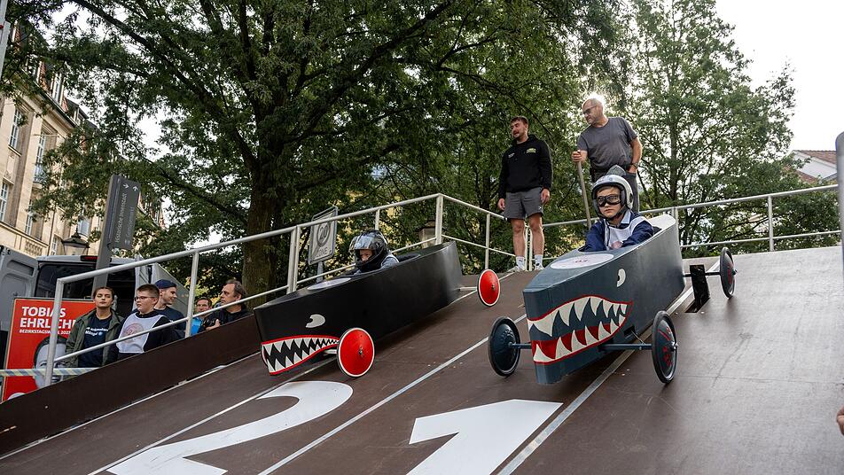Unter den Augen zahlreicher Schaulustiger sind am Sonntag (3. September 2023) nach fast drei Jahrzehnten Pause wieder Seifenkisten durch Coburg gerast. Bei dem "Seifenkisten-Revival" gingen in drei Rennklassen Fahrerinnen und Fahrer mit ihren selbst gebauten Gefährten an den Start - teilnehmen konnten Kinder ab sechs Jahren bis hin zu Azubis der örtlichen Firmen.