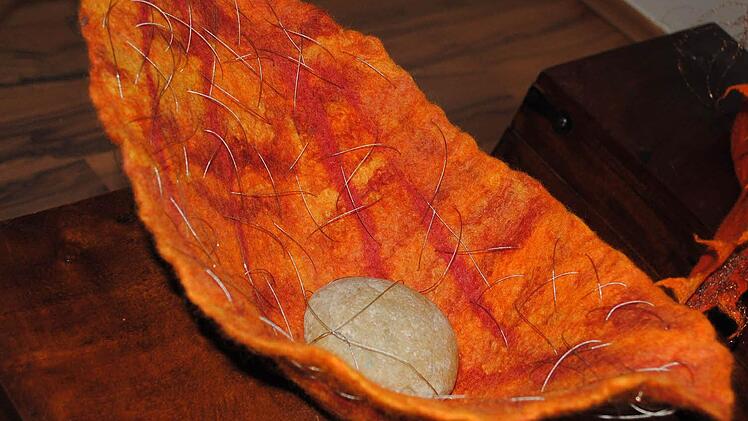 Würfel, Filz und Haikus Zu sehen sind an diesem zentralen Ort zudem Nicola Gottfried-Riemerschmidts eigenwillige Keramikwürfel, Gudrun Treibers hintergründige Fortentwicklungen aus Fotografie, Zeichnung und Malerei, Irene Reinhardts warm und wollig einnehmende, assoziationsreiche Filz-Boote, zu nutzen gerne als Schalen, Gitta Hofrichters Haiku-Bilder und Elisabeth Pötzls auf Leinwand gedruckte fotografische Ausschnitte, die sich aus ihrem kleinen Format und ihrer Vielfältigkeit zum größeren Werk zusammenfinden.