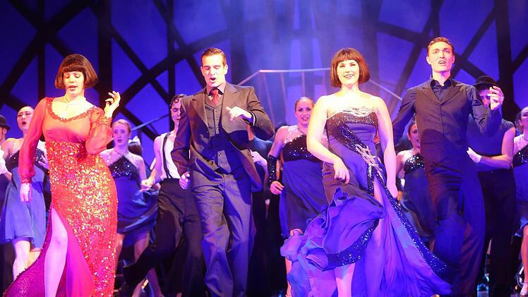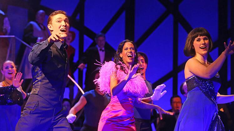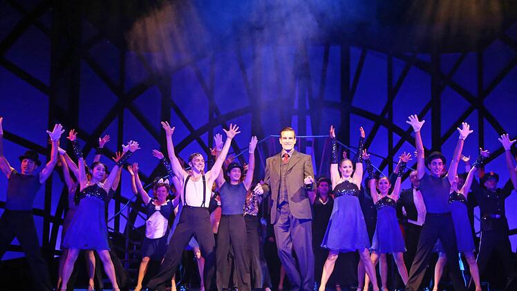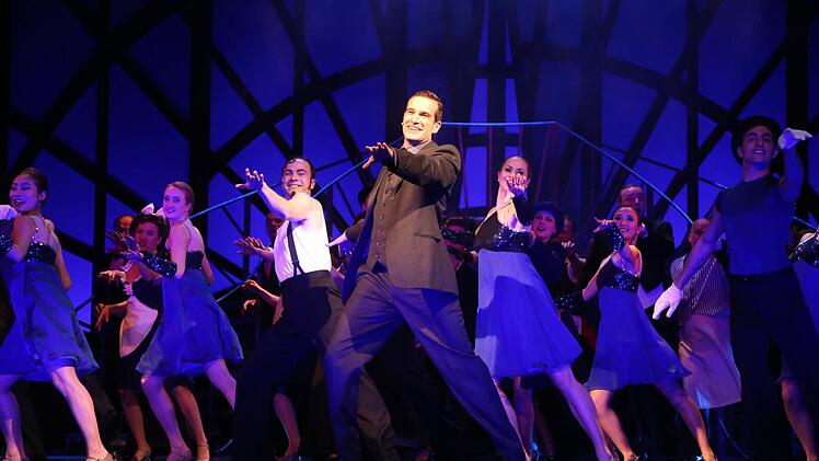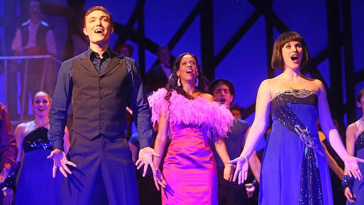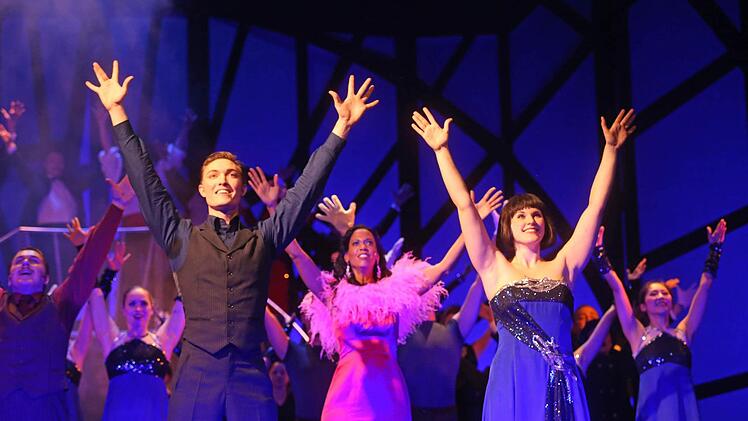 Was in gleichem Maße wie der Musik der ungemein spritzigen und witzigen Inszenierung von Iris Limbarth zu verdanken ist. Die Gastchoreografin, die uns schon "Hair" beschert hat, lässt von der ersten Minute an das riesige Ensemble aus Sängerdarstellern, Chor, Ballett und Statisterie tanzen, was das Zeug hält, vom nostalgischen 40-er Jahre-Step blitzartig in die fetzigen Clubszenen, hochfahrend über die grandiose Treppenkonstruktion in den leuchtfarbenen Showhimmel, den