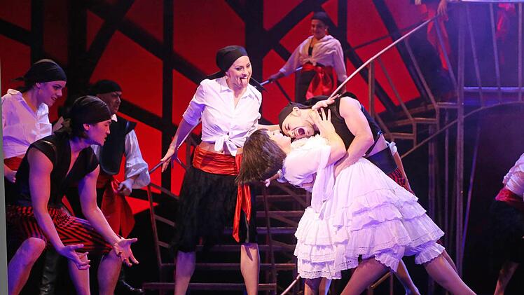 Kulp), um nur die wichtigsten Rollen zu nennen in einem Heer aus befeuerten Sängertänzern, die im Kostümrausch von Heike Korn und mit unablässigem Witz agieren.