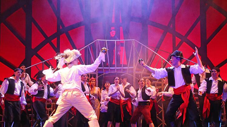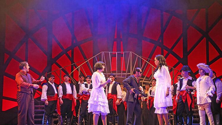 Barry Manilows Musik aber hat hinreißenden Schwung in Swing und Latin, mit eingängigen Melodien und stimmungsvollen Situationsmalereien, zur Mitte hin sogar schwelgend in Ravels raffiniert adaptiertem "Bolero". Sie wird vom Auswahlorchester des Landestheaters unter Leitung von Roland Fister in solch sprühendem Drive, mit strahlenden Bläsern unter unausweichlichen