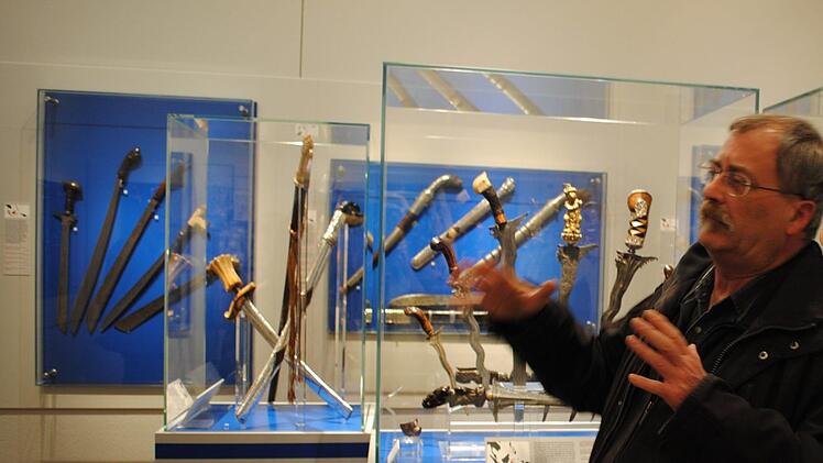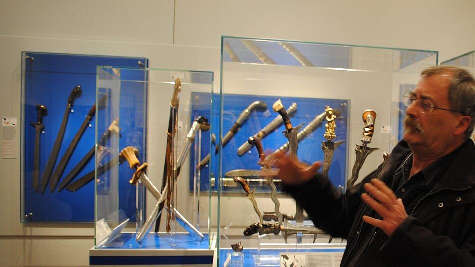Und noch wichtiger: Der Besucher kann den Ausstellungsobjekten hier sehr nah kommen, die jetzt gezeigten Waffen in den Vitrinen aus wenigen Zentimetern Abstand in Augenschein nehmen.