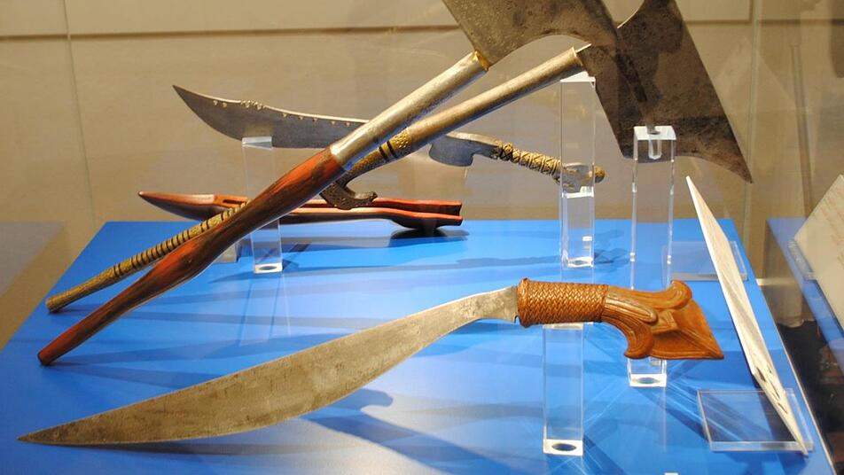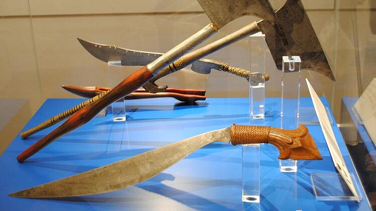 Indonesien umfasst ein riesiges Areal aus über 17 000 Inseln, von denen 6044 bewohnt sind. Dort entwickelten die vielen kleinen ethnischen Gruppen jeweils ihre eigene Formensprache der oftmals zwischen Werkzeug und Waffe angesiedelten Instrumente. Trotzdem gebe es eine gemeinsame Grundcharakteristik. "Wenn etwas aus Indonesien kommt, erkennt man das sofort", sagt Alfred Geibig. Die jetzt ausgewählten Waffen stammen von den Inseln Java, Sumatra, Borneo und Celebes.