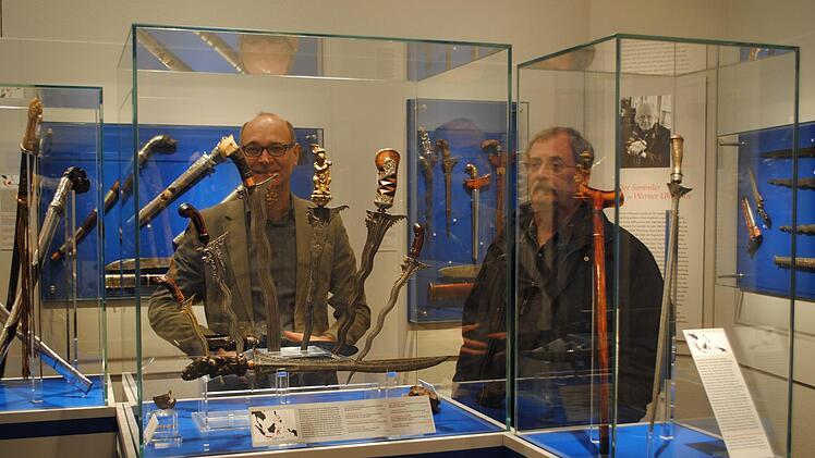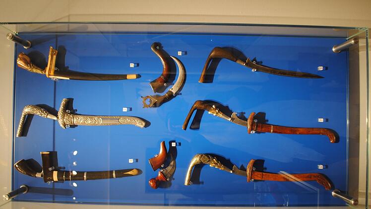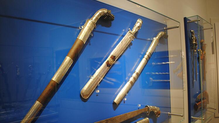 Das hatten wir zwar schon vor drei Jahren in größerem Rahmen auf der Veste, als die Sammlung Uhlmann nach der durchaus spektakulär zu nennenden Schenkung präsentiert wurde. Jetzt aber hat der auf der Veste für die Waffensammlungen zuständige Kurator Alfred Geibig aus den etwa 1000 Objekten 70 der schönsten oder prägnantesten in den unterschiedlichen Formen und Nutzungen ausgewählt, um mit dieser keinesfalls klein zu nennenden Schau das neue Studio zu eröffnen.
